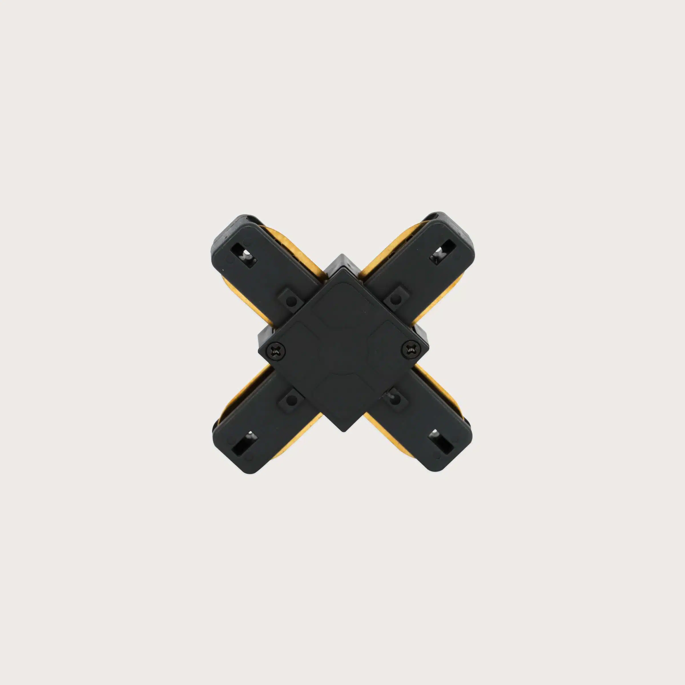 The MG-6201-X SHAPED BLACK is a professional-grade aluminum profile fitting designed specifically for creating seamless four-way intersections in track lighting layouts. Finished in a sleek matte black, this X-shaped connector ensures both structural integrity and electrical continuity between four track sections, allowing for expansive and highly customized lighting grids in modern residential or commercial spaces.