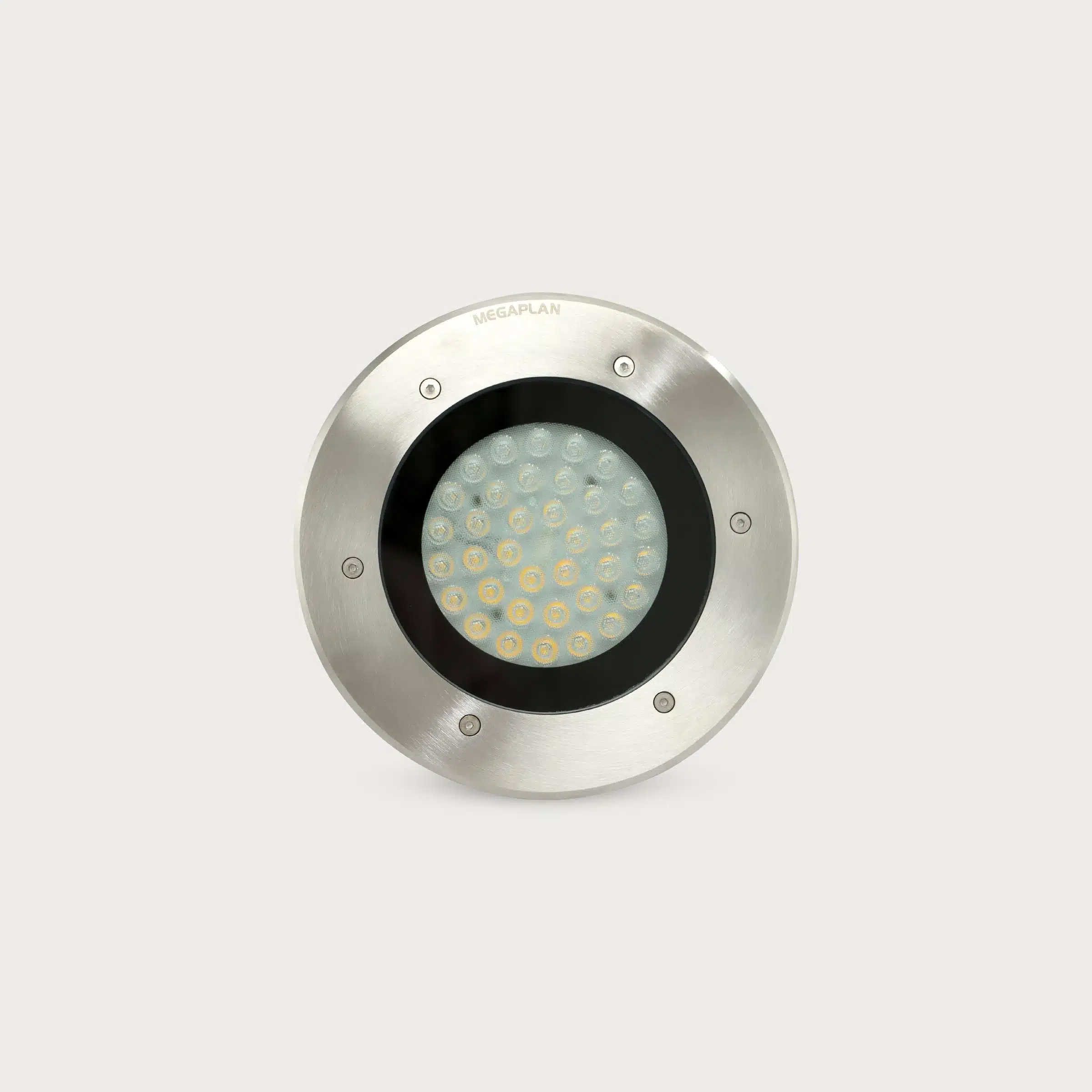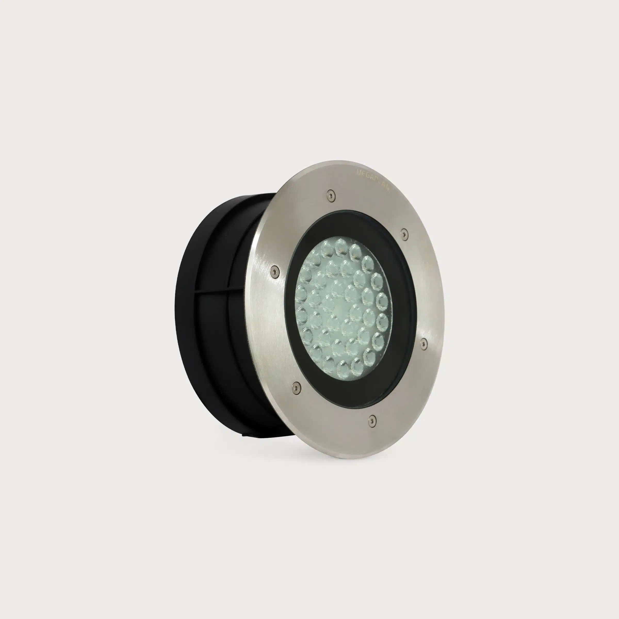 The MEGAPLAN MG-MD-0003A underground spotlight is a high-power outdoor lighting fixture designed for recessed ground installation in large-scale architectural and landscape projects. Its large circular form and modern silver-black finish create a strong visual presence while blending cleanly into paved surfaces. This fixture delivers powerful upward illumination, making it ideal for washing façades, highlighting tall structures, trees, monuments, and expansive landscape elements. Designed for demanding outdoor environments, it combines durability, visual impact, and wide light coverage, offering a reliable solution for professional outdoor and architectural lighting applications.